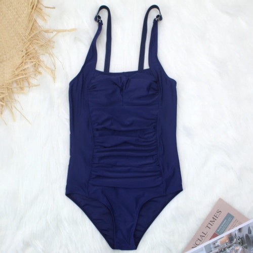 Doskonale podkreśla atuty sylwetki, ukrywając przy tym jej wszelkie niedoskonałości. Strój w kolorze czarnym ozdobiony marszczonym materiałem na brzuchu, który wyszczupla optycznie talię.
